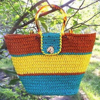 Yaklaşan yaz günleri için mükemmel bir çanta örneği. Plaj çantası olarak kullanılabilecek bir çanta modelidir. El emeğinizle plaj çantanızı şimdi başlayıp tatile kadar bitirebilirsiniz. Renkli makrome ipleri ile tığla örülür. Aralıksız dolamadan batılan sıkıyne tekniği ile yapılır. Model takip edilip renk değiştirilerek örülür. Çok şık bir yazlık çanta örneğidir.