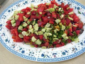 Tüm malzemeler küp küp doğranır. Üzeri maydanoz ile süslenir. Zeytinyağı, limon ve tuz eklenip servis yapılır. Afiyet olsun.